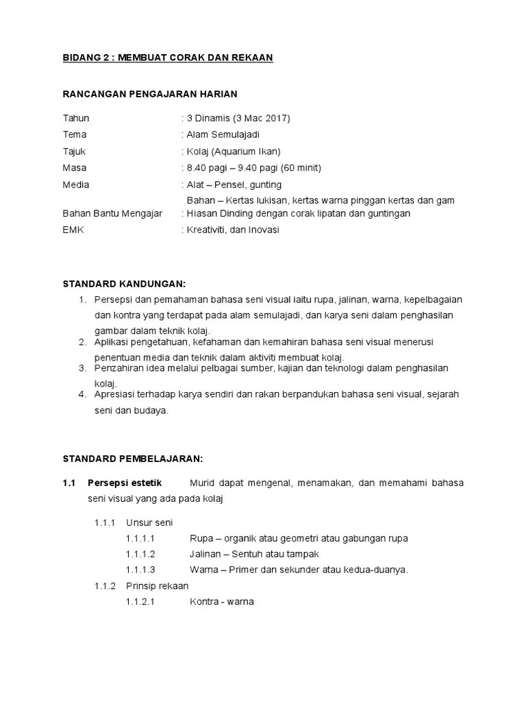 Standard pembelajaran ilustrasi aktiviti persepsi estetik guru menunjukkan contoh corak teknik. Keusahawanan, kreativiti dan inovasi, tmk dan nilai murni contoh rancangan pelajaran harian : Contoh soalan :a)apakah kegunaan benda ini? Iii) gambar burung emk : Dunia seni visual (tahun 3)